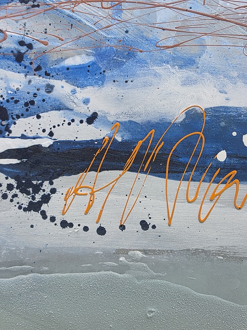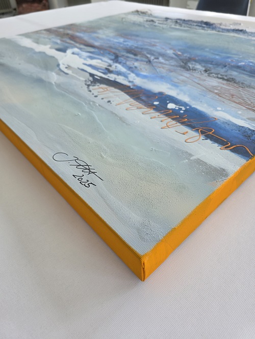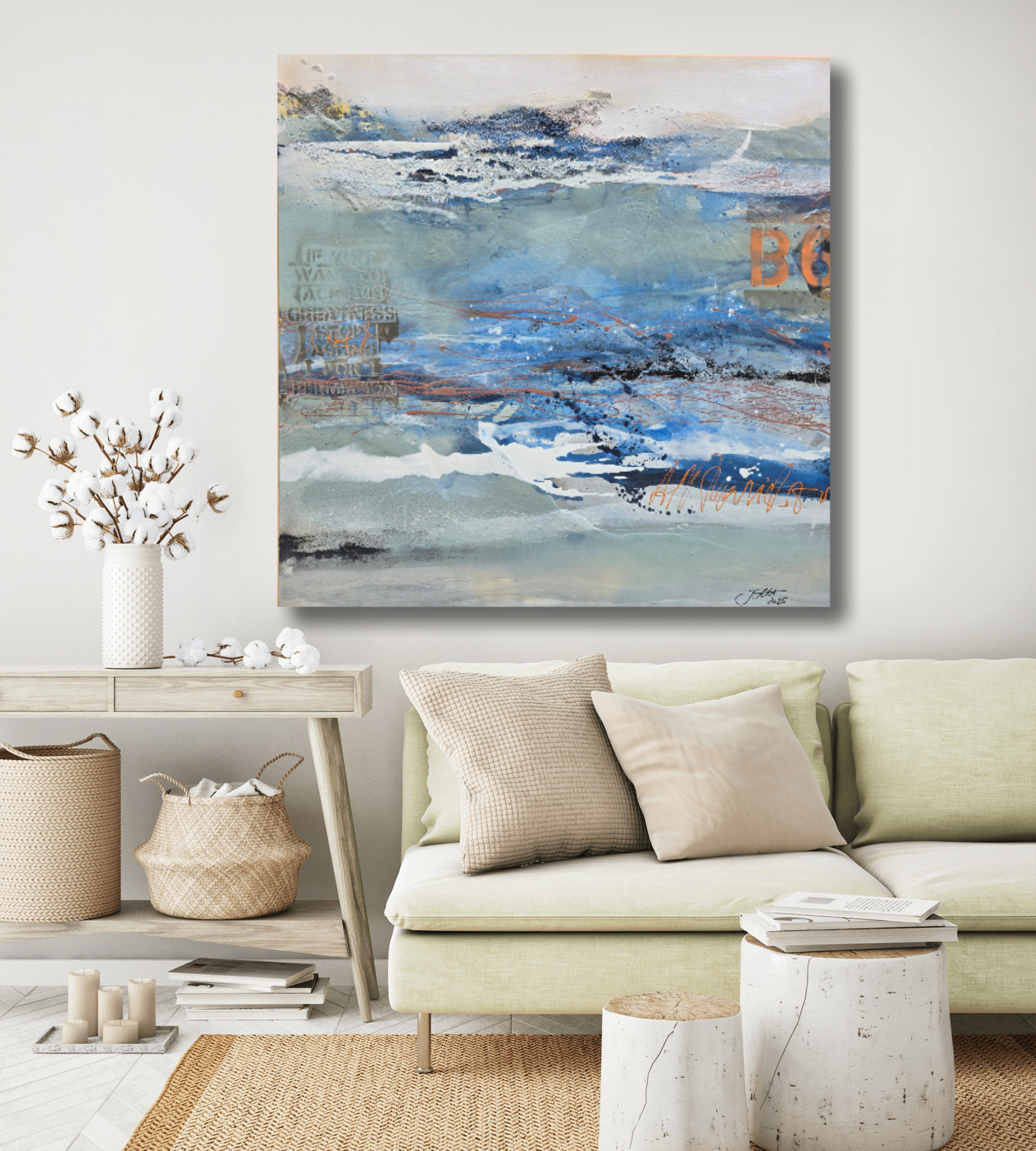 Originalbild Julia Eckardt „Blue motion“ (2025) Acryl, Mischtechnik auf Leinwand 100 x 100 cm