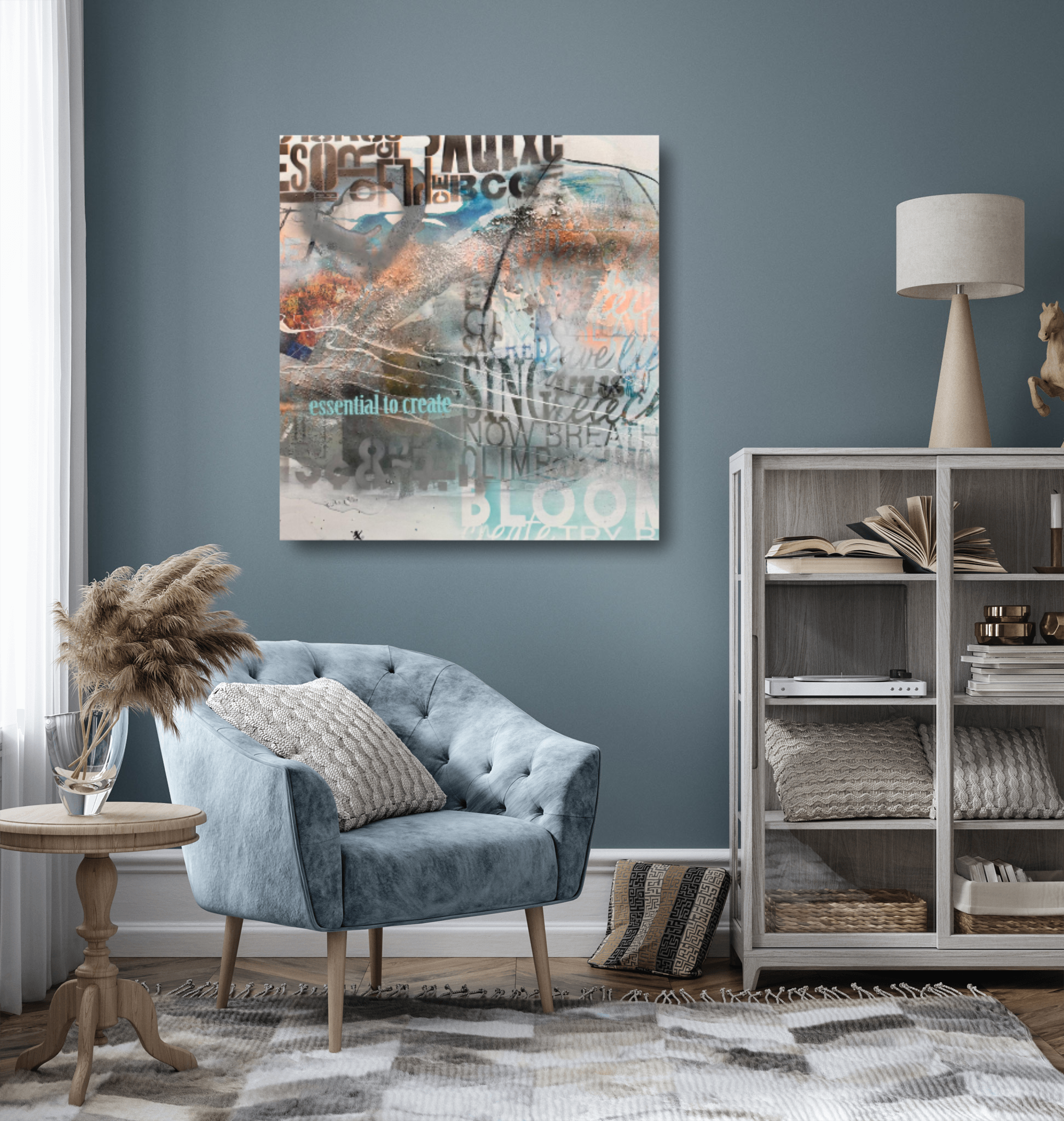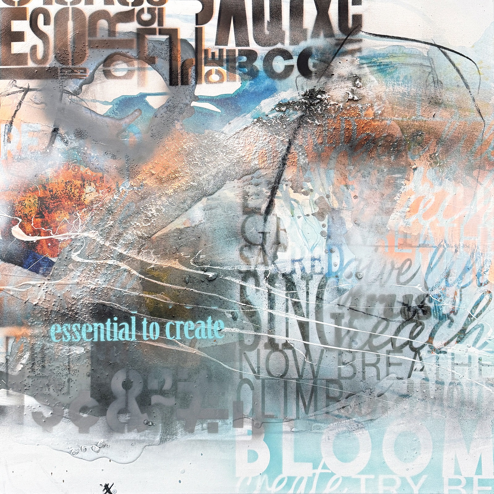Originalbild Julia Eckardt „Essential“ (2025) Acryl, Mischtechnik auf Leinwand 80 x 80 cm