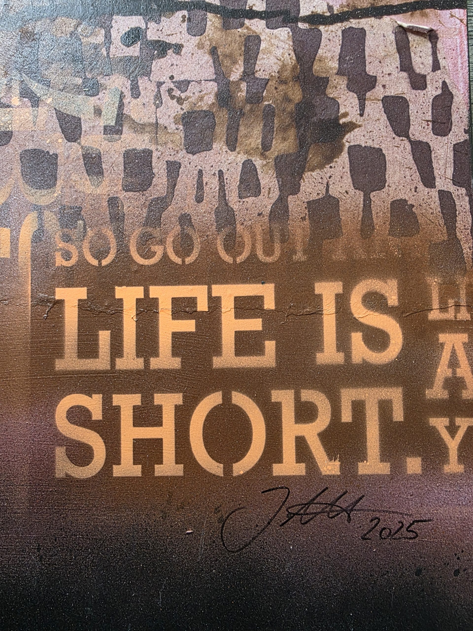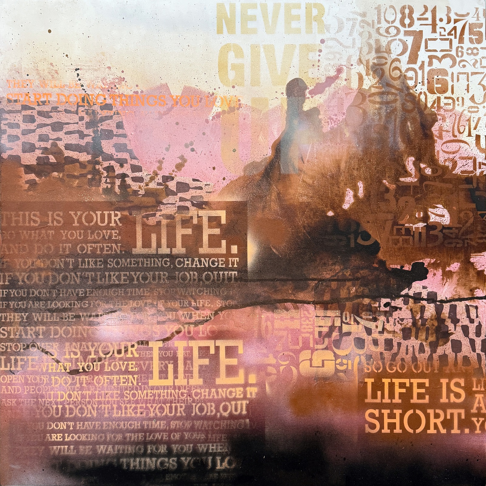 Originalbild Julia Eckardt „Never give up“ (2025) Acryl, Mischtechnik auf Holz 80 x 80 cm